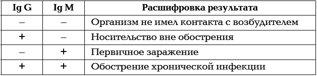 Таблица 1. Интерпретация анализа крови на антитела к различным возбудителям TORCH-инфекции