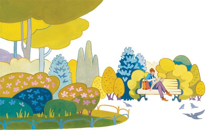 Ка́к-то ле́том я зашёл в са́дик, – я не зна́ю, как он называ́ется, на Васи́льевском о́строве, о́коло бе́лой це́ркви. Была́ у меня́ с собо́й интере́сная кни́га, я засиде́лся, зачита́лся и не заме́тил, как наступи́л ве́чер. Когда́ в глаза́х у меня́ заряби́ло и чита́ть ста́ло совсе́м тру́дно, я захло́пнул кни́гу, подня́лся и пошёл к вы́ходу.