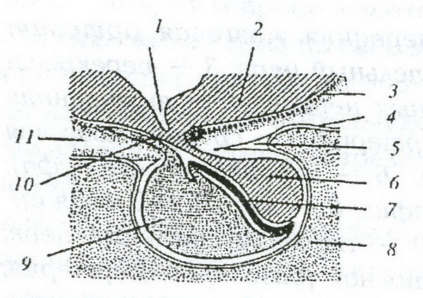 Рис. 7. Сагиттальный разрез гипофиза (схема)