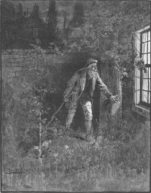 For Philip's dwelling fronted on the street, The latest house to landward; but behind With one small gate that open'd on the waste, Flourish'd a little garden square and wall'd: And in it throve an ancient evergreen, A yew tree, and all round it ran a walk Of shingle, and a walk divided it: But Enoch shunn'd the middle walk and stole Up by the wall, behind the yew; and thence That which he better might have shunn'd, if griefs Like his have worse or better, Enoch saw.