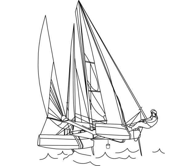 Подготовка к выходу. Катамаран со "срубленной" мачтой у берега. Приготовились к ремонту навигационных огней.