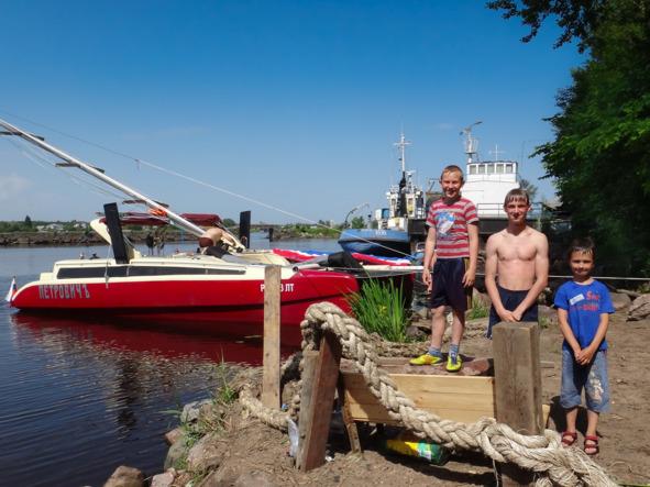 На пляже Шлиссельбурга. Эти три мальчугана помогли установить мачту