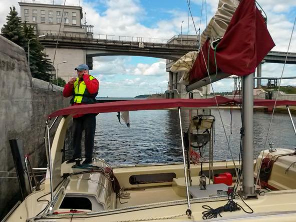 Витя провёл коротенький инструктаж, что делать во время шлюзования. Его волнует, чтобы мы всё сделали чётко, правильно и без суеты. Все одели спасательные жилеты и вошли в шлюз вслед за «Пушкиным». Большой водяной лифт сработал безотказно. Команда катамарана тоже.
