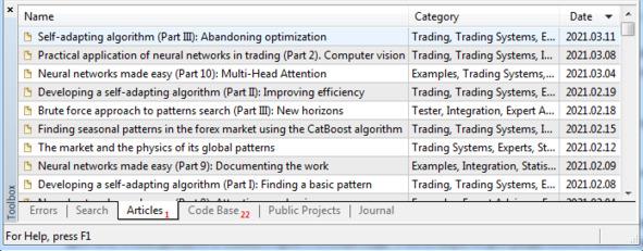 — Code Base — открытые коды сайта mql5.com, открываются в браузере.