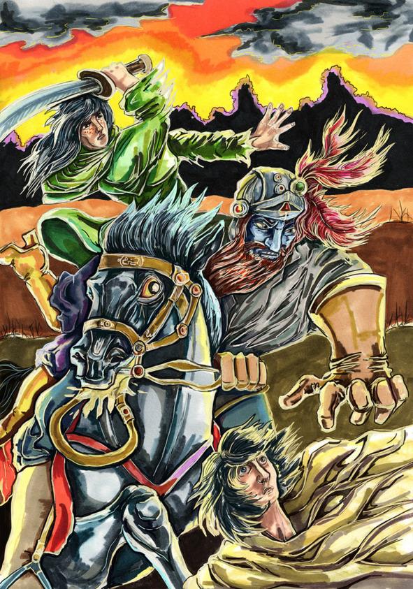 — По-хорошему согласишься нас порадовать, или мы щенка твоего прирежем сперва? — назардимец расхохотался. Василина ничего не ответила. Она просто ринулась вперёд, на ходу обнажая меч, и в прыжке отсекла всаднику руку. А затем, развернувшись, вогнала клинок в его шею по самую рукоять.