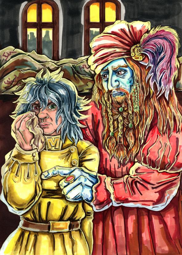 — Эрвин, беги! — крикнула она, уклоняясь от очередного удара. Но мальчик не успел сделать и шага: третий стражник поймал его и зашвырнул, словно мешок, на спину своей лошади. Василина на секунду отвлеклась, и противник сбил её с ног. Назардимец быстро спешился и прижал Василину к земле всем своим весом. Одной рукой он сдавил ей горло, а второй занёс саблю. Василина захрипела, тщетно пытаясь вырваться.