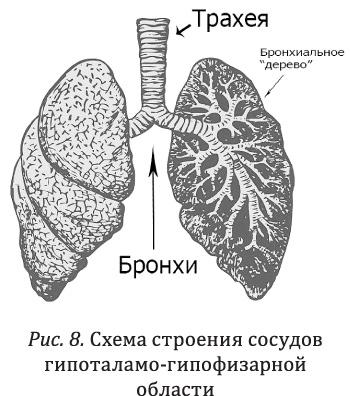 Легкие вообще похожи на лист с прожилками, только очень объемный (рис. 7), а сеть мозга (рис. 8) аналогична кроне дерева.