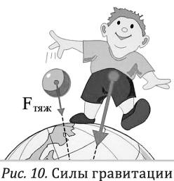 Те же силы вытягивают вверх и человека. То есть работает закон физики: «сила действия равна силе противодействия». На все биологические существа действует сила тяжести, которая прижимает нас к Земле, не позволяя центробежной силе «сдувать» нас с планеты (рис. 10).