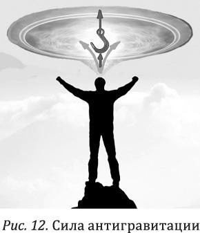 В противовес силе гравитации (рис. 11) возникает сила антигравитации (рис. 12), которая выталкивает нас вверх, как бы вытягивая за макушку воронкой «антисмерча», заботясь о том, чтобы нас не согнуло раньше времени.