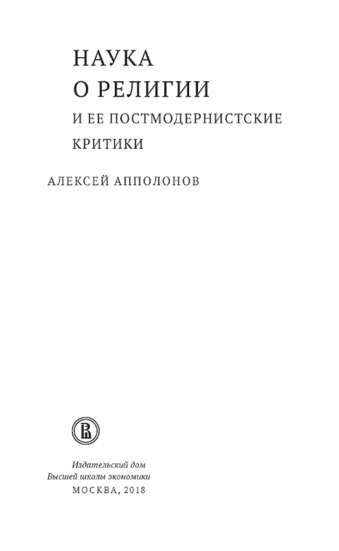 А76 Наука о религии и ее постмодернистские критики [Текст] / Апполонов А. В.; Нац. исслед. ун-т «Высшая школа экономики. — М. : Изд. дом Высшей школы экономики, 2018. —(Исследования культуры). — 1000 экз. — ISBN 978-5-7598-1692-8 (e-book).
