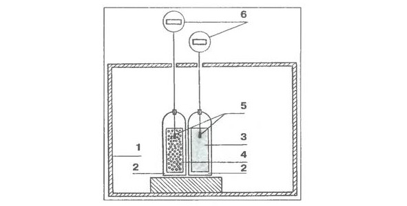 1. cabinet with thermal insulation2. Dewar vessels3. continuous medium (water)4. porous medium5. electronic thermometers (error not more than 0,02С)6. temperature sensors