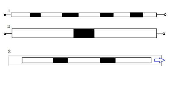 1. A nickel or nichrome spiral, when a current of 1—1.5 A passes through it, at a voltage of 140 V, reveals local heating zones. Presumably, these are areas of internal separation, inherent in any (as it is isolated from the environment) physical body. 2. Gutter with a conductive mass of wet sand. The capacity is divided in two by the central zone of increased heating. 3. The galvanized plate in a solution of hydrochloric acid is divided into segments. The presence in the acid stream (as an option) shows the zones of increased oxidation faster, but does not change the overall picture.