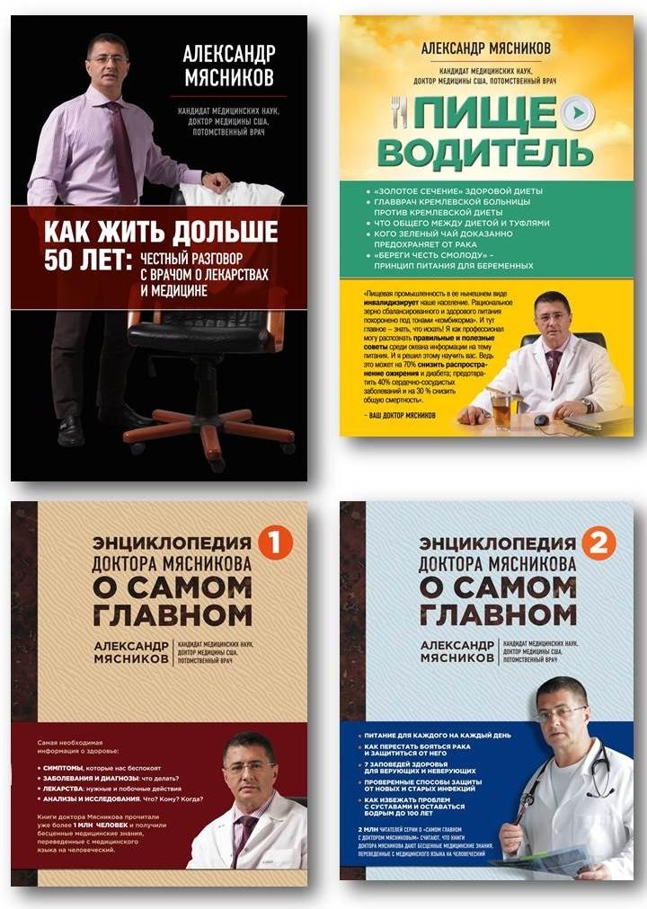 – Александр Леонидович – один из самых компетентных докторов. Объясню почему. Во-первых, у него за плечами прекрасная советская медицинская школа. Прежде всего из семьи, т. к. он прямой и единственный наследник знаменитой врачебной династии Мясниковых, признаваемой во всем мире. Во-вторых, он сумел всего за полгода сдать экзамены и подтвердить врачебную квалификацию в США. Это удается крайне немногим российским медикам и позволяет судить об уровне его знаний и квалификации. К тому же 3 года работы в американской скоропомощной больнице учит очень быстро и безошибочно ставить диагноз и оказывать помощь. Есть еще и «в-третьих», и «в-четвертых». То, как он сейчас мгновенно реагирует на медицинские вопросы во время теле-, радиоэфиров, на очных встречах с читателями, подтверждает актуальность его знаний. Он – несравненный диагност, и, что самое удивительное, при этом любит людей, хочет реально помочь и делает все, чтобы нас не обманывали, навязывая ненужные лекарства и услуги. Я могла в этом не раз убедиться, когда он на встречах с читателями не на камеру бесплатно консультировал какую-нибудь скромную старушку. Доктор Мясников – ВРАЧ, которому доверяют.