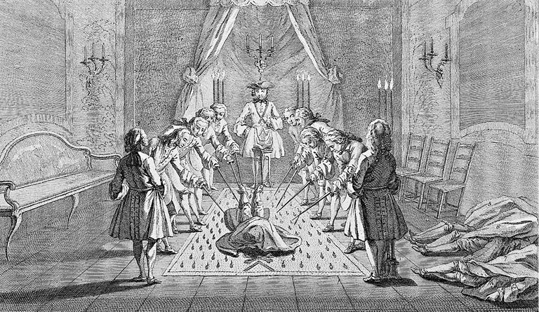 Посвящение в масоны. Гравюра Жака-Филиппа Леба, XVIII в.