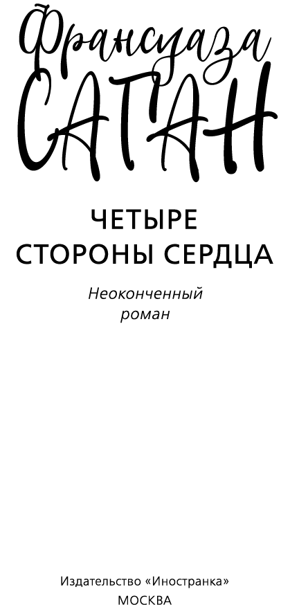 Четыре стороны сердца : неоконченный роман / Франсуаза Саган ; пер. с фр. И. Волевич. — М. : Иностранка, Азбука-Аттикус, 2020. — (Большой роман).