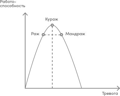 Аналогичным образом влияет на эффективность команды тревожность. Две крайние точки мы обозначаем терминами «раж» и «мандраж». В состоянии ража команда не ощущает ответственности за свои решения, поэтому предпринимает множество бездумных хаотичных действий, которые практически никогда не приводят к результату. Команда ведет себе неуправляемо и непредсказуемо, мыслит бессвязно, поток абстрактных идей и оторванных от жизни предложений невозможно структурировать и сфокусировать. Противоположная ситуация — мандраж. Из-за повышенной тревожности команда в этом состоянии испытывает давление гиперответственности. Ее мышление заторможено, скорость принятия решений снижена из-за чрезмерного углубления в детали и желания учесть даже маловероятные риски. В результате начинания, как писал Шекспир, «теряют имя действия»1.