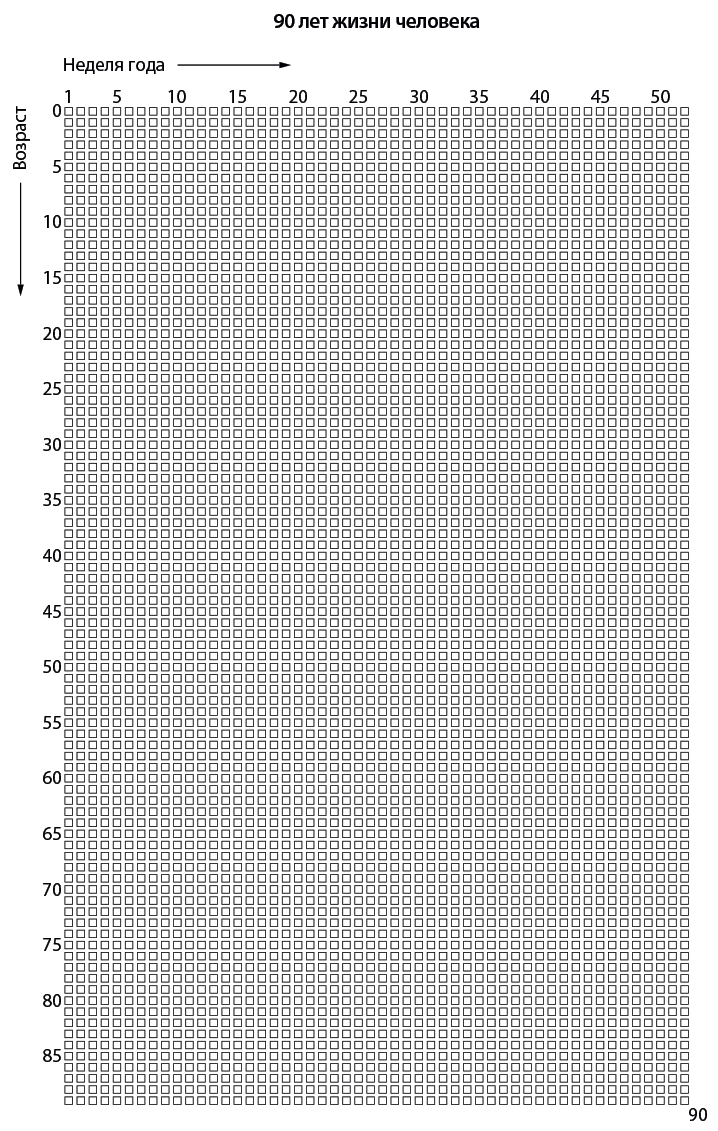 Далее вы найдете разделенный на недели календарь, в котором со сдержанным оптимизмом выражена надежда на 90-летнюю продолжительность жизни.