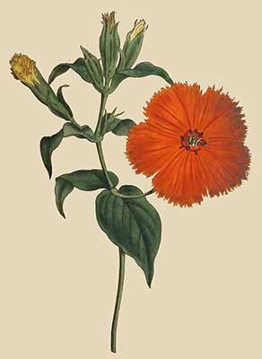 Last summer 1792, in the month of July, we had the pleasure to see a fine plant of this sort, fully blown, in the collection of Messrs. Grimwood and Co. Kensington; though in a small pot, it grew nearly to the height of six feet, was branched almost to the bottom, and loaded with a profusion of blossoms, such as are represented on the plate, and which bore some distant resemblance to those of a passion-flower.