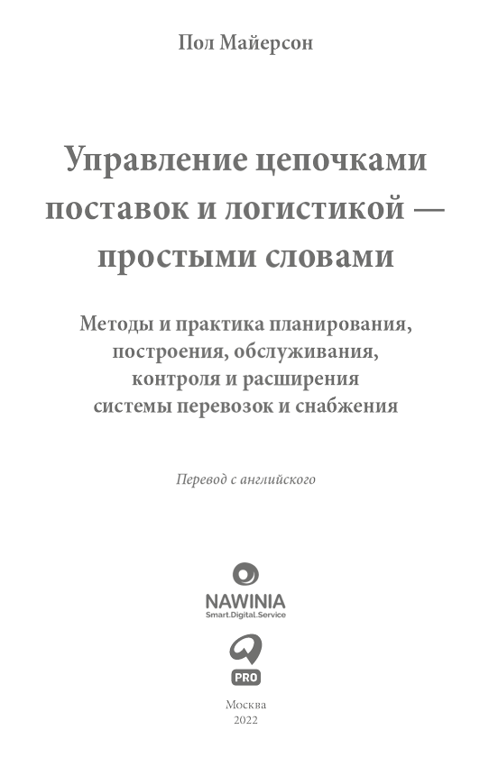 Компания NAWINIA действует как логистический оператор и предоставляет услуги в странах СНГ, Европы и Азии. Мы растем — и не собираемся останавливаться. В своей стратегии развития мы делаем ставку на цифровые технологии и экспертизу наших сотрудников, разделяющих ценности компании, среди которых отдельной строкой стоят профессионализм и развитие. Мы с радостью поддерживаем выход на русском языке книги Пола Майерсона, специалиста с многолетним опытом, консультанта и практикующего профессора Лихайского университета.