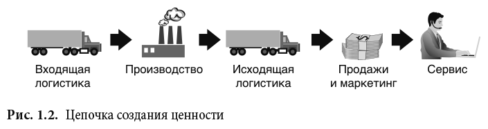 Модель цепочки создания ценности, разработанная Майклом Портером, отражает деятельность организации по созданию добавленной стоимости, что, как показано на рис. 1.2, в значительной степени зависит от цепи поставок.
