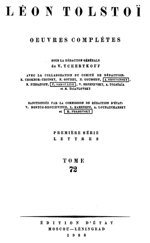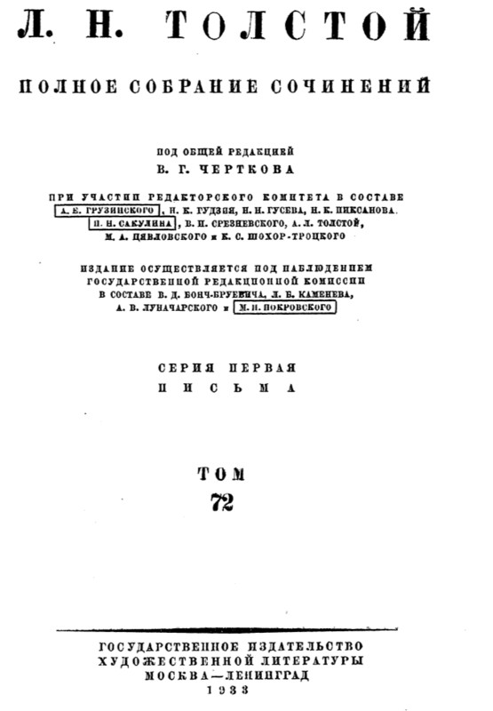Полного собрания сочинений Л. Н. Толстого, предоставленной