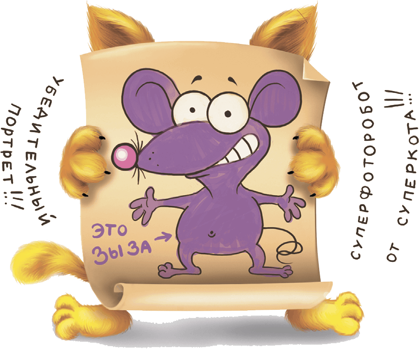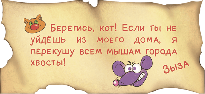 – Стойте и не двигайтесь! Я – коварный и неповторимый Зыза! Я вернулся, чтобы разрушить музей! И не остановлюсь на этом! Смотрите все – я украл вашу знаменитую картину и разгадаю её тайну сам! Но это не всё! Я заберусь в каждый дом, в каждую нору! Всё переломаю, везде набезобразничаю! А если кто попытается мне помешать, то, ух, что я с ним сделаю! И ни один кот не остановит меня, будь он хоть трижды гением!