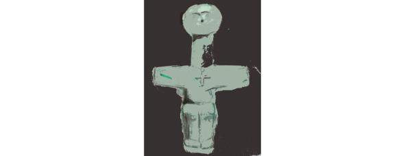 История её восходит к эпохе медного века, примерно к 3500 г. до н. э. Немудрено, что уже на подступах к Помосу путешественников встречает и провожает огромный каменный монумент этой фигурки, именуемой Помосским идолом. Скульптура представляет собой фигуру человечка с разведёнными руками, в котором угадываются женские черты. Не исключено, что она представляет собой символ плодородия. Высота подобных идолов с крестиками на длинной шее может варьироваться от 5 до 15 см. Меньшие версии древние жители, судя по креплению на фигурке, носили как амулеты.