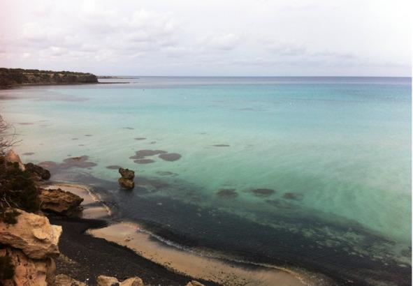 Впереди — бухта Манолис, известная своими морскими пещерами. Обратитесь к капитану с вопросом о названии бухты, и он поведает незамысловатую историю о бесстрашном рыбаке Манолисе. У влажных гротов хорошо просматриваются с палубы самые важные морские экосистемы Акамаса — подводные луга. Словно сам древнегреческий бог, повелитель морей Посейдон, создал эти луга колониями посидонии океанской, недаром название водоросли происходит от его имени. Вместе с травой Нептуна (другое название посидонии), создающей на мелководье барьерные рифы для защиты побережья от штормов, эти зоны относят к «природоохранным». В таких луговых царствах обитают: самый крупный моллюск Средиземного моря — бочечка, или гигантская тонна, cамый крупный из двустворчатых моллюсков европейских морей — благородная пинна, которую в старину добывали ради биссуса для получения дорогостоящей ткани виссона и, конечно, осьминог обыкновенный. Ёж морской скальный, краб, полосатая барабуля, европейская мурена, павлинья талассома, он же губан, даже носа не высовывают из своих подводных убежищ, так напуганы они наплывом туристов. Да у туристов на них совсем нет времени, ведь они спешат в Голубую лагуну.