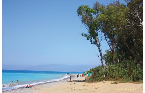Эвкалиптовая роща раскинулась на отдалённом песочном морском берегу, к которому ведёт дорога вдоль оливковых и цитрусовых садов. Найти её можно по дорожному указателю Camping Site (Палаточный городок) из порта Лачи, а также из центра Полиса. Приблизившись к роще, откройте окна машины и впустите аромат эвкалиптовых гигантов. А может быть до вас донесётся запах шашлыка, шипящего на углях жаркого мангала, который разжёг кто-то из отдыхающих. Приезжают сюда люди разных возрастов, но особенно молодые романтики, искатели приключений и все те, в ком живёт дух свободы, юности и любви к дикой природе. Взяв напрокат палатку, остаются они в роще на несколько дней, слушают музыку в пляжном баре и дивятся мерцающим ночным звёздам.