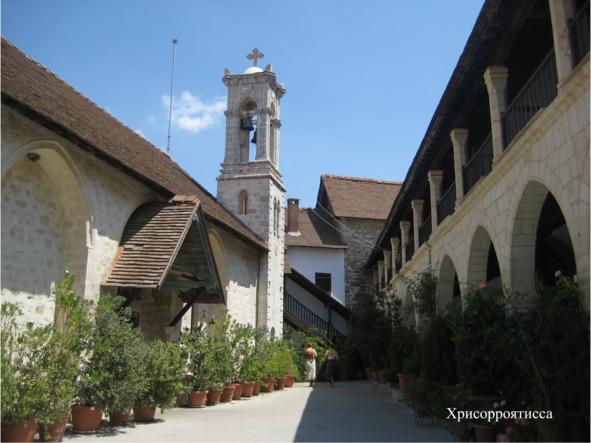 Приезжают современные паломники к горе Ройя в окружении других живописных гор, где у раскидистой сосны, сгорбившейся от старости своих более 110 лет, приютилась обитель Хрисорроятисса. Об истории монастыря с момента возникновения в XII в. до начала XVIII в. сохранилось совсем немного сведений. Ценную коллекцию архивных материалов по истории обители собрал и оставил игумен монастыря Иоаким. В 1801 г. он заказал знаменитому критскому художнику Иоанну Корнаро большую гравюру Богородицы Хрисорроятиссы, которая хранится сегодня в монастырском музее. В основе гравюры — медальоны вокруг центрального образа Пречистой Девы с Младенцем на руках, подробно иллюстрирующие давние события, связанные с чудесным обретением иконы и устроением монашеской обители. Согласно преданию, эта главная святыня обители, икона Богородицы, является одной из семидесяти икон — копий трёх оригинальных икон, написанных апостолом Лукой.