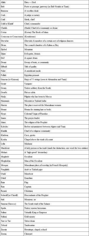 The African Mediterranean littoral, the mountains and the desert beyond, and all that lies between, have found their only true exponents in Mme. Myriam Harry, MM. Louis Bertrand, Arnaud and Maryval, André Gide and Isabelle Eberhardt, and Victor Barrucaud. These and some others mentioned further on are the latter-day authorities on the Arab life of Africa, though the makers of English books on Algeria and Tunisia seem never to have heard of them, much less profited by their next-to-the-soil knowledge. Instead they have preferred to weave their romances and novels on “home-country” lines, using a Mediterranean or Saharan setting for characters which are not of Africa and which have no place therein.