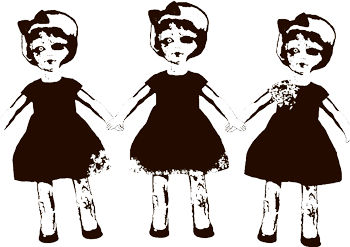 Ледяные Шарлотты (англ. Frozen Charlotte) – куколки, которые были популярны в США с 1850 по 1920 гг. Название куколок пошло от народной американской баллады «Прекрасная Шарлотта», о которой будет сказано ниже. Куклы могли быть от 2 (и меньше) до 46 см в длину. – Здесь и далее примечания редактора.