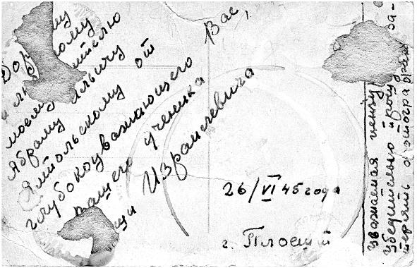 На обороте – несколько строк для любимого учителя Ямпольского из ЦМШ и сбоку – слёзная просьба к цензуре (!) не выкидывать фото.