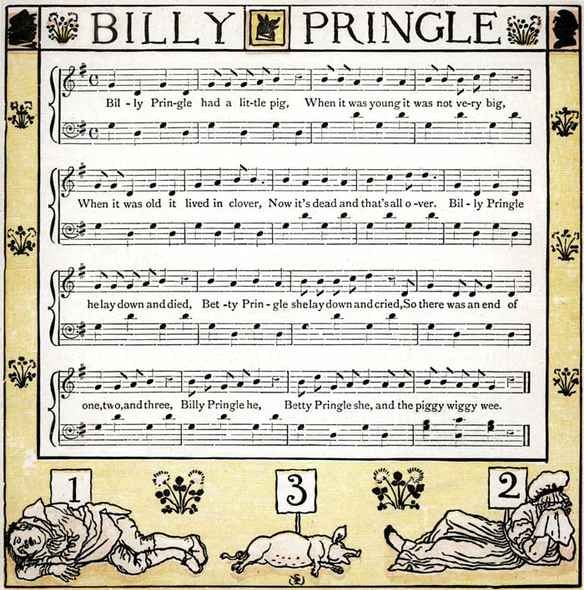 And his dog he called Fidelle, For he loved his master well; And he had a little pony for his pleasure O! In a sty not very big He’d a frisky little pig, Which he often called his little piggy treasure O!3