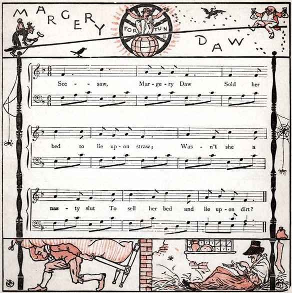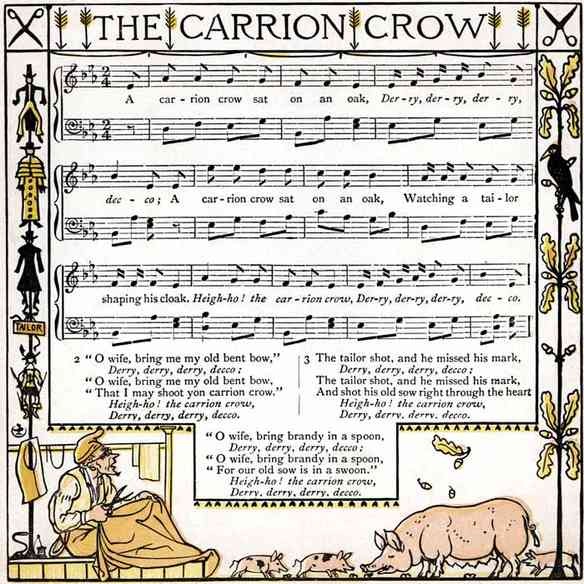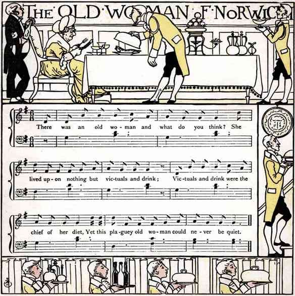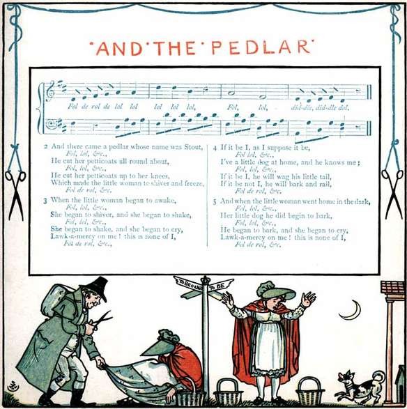 Fol, lol, &c., He cut her petticoats all round about, Fol, lol, &c., He cut her petticoats up to her knees, Which made the little woman to shiver and freeze, Fol de rol, &c.3 When the little woman began to awake,