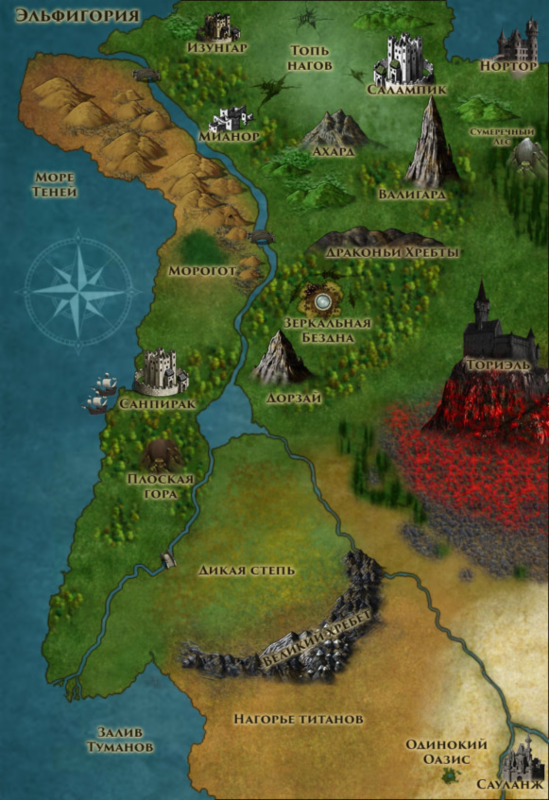 Попрощавшись с землей, он соединил между собой сияющие синевой ладони и образовавшийся над пропастью сгусток энергии перенес его в иное измерение. Во мраке пустоты, он воплотил новую фантазию и назвал ее Саннариас. В холодную планету создатель пустил ветра и наполнил гигантские впадины водой. Последним, Армалог зажег солнце и с первыми лучами в дивном мире пробудились нуари».
