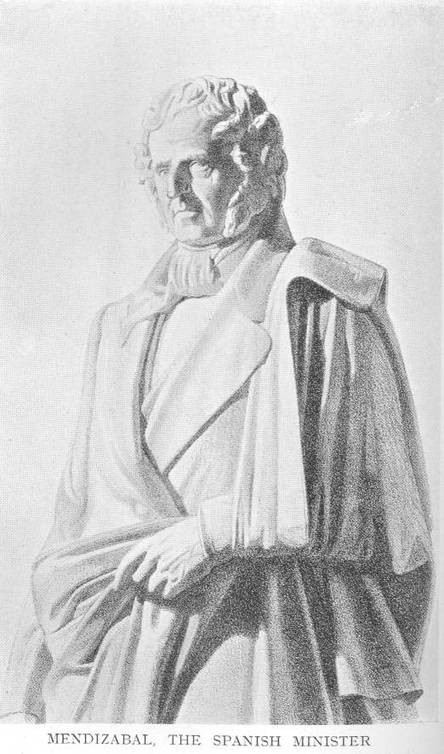 In spite of this, Borrow said in the same book that this would probably be the last occasion he would have to speak of the Gypsies or anything relating to them. In “The Bible in Spain,” written and revised several years later, he changed his mind. He wrote plenty about Gypsies and still more about himself. When he wished to show the height of the Spanish Prime Minister, Mendizabal, he called him “a huge athletic man, somewhat taller than myself, who measure six feet two without my shoes.” He informed the public that when he met an immense dog in strolling round the ruins above Monte Moro, he stooped till his chin nearly touched his knee and looked the animal full in the face, “and, as John Leyden says, in the noblest ballad which the Land of Heather has produced:—