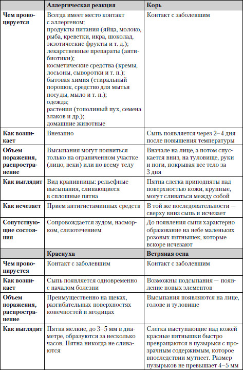 Во многих случаях характер сыпи свидетельствует об определенном заболевании (табл. 1.8).