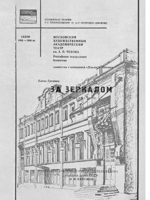Программка спектакля «За зеркалом». МХАТ им. А.П. Чехова. 1994 год.