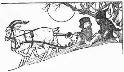 Tommy had no brothers or sisters, and the only cousins he had in town were little girls younger than himself, to whom he had to “give up” when any one was around, so he was not as fond of them as he should have been; and Sate, his dog, a terrier of temper and humours, was about his only real playmate. He used to play by himself and he was often very lonely, though he had more toys than any other boy he knew. In fact, he had so many toys that he was unable to enjoy any one of them very long, and after having them a little while he usually broke them up. He used to enjoy the stories which his father read to him out of Mother Goose and the fairy-books and the tales he told him of travellers and hunters who had shot lions and bears and Bengal tigers; but when he grew tired of this, he often wished he could go out in the street and play all the time like Johnny Stout and some of the other boys. Several times he slipped out into the road beyond the cow-lot to try to get a chance to play with Johnny who was only about a year older than he, but could do so many things which Tommy could not do that he quite envied him. It was one of the proudest days of his life when Johnny let him come over and drive his goats, and when he went home that evening, although he was quite cold, he was so full of having driven them that he could not think or talk of anything else, and when Christmas drew near, one of the first things he wrote to ask Santa Claus for, when he put the letter in the library fire, was a wagon and a pair of goats. Even his father’s statement that he feared he was too small yet for Santa Claus to bring him such things, did not wholly dampen his hope.