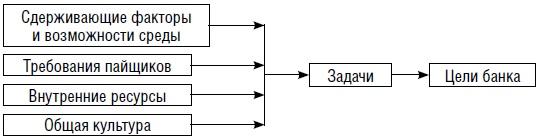 При установлении целей банка во внимание принимается потенциал окружающей среды, внутренние ресурсы банка, а также требования пайщиков. Этот процесс изображен на рис. 1.1.