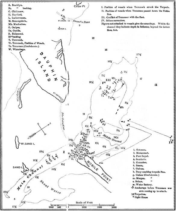 Key West is one of the low coral islands, or keys, which stretch out, in a southwesterly direction, into the Gulf from the southern extremity of the Florida peninsula. It has a good harbor, and was used during, as since, the war as a naval station. From Key West to the mouth of the Rio Grande, the river forming the boundary between Mexico and the State of Texas, the distance in a straight line is about eight hundred and forty miles. The line joining the two points departs but little from an east and west direction, the mouth of the river, in 25° 26' N., being eighty-three miles north of the island; but the shore line is over sixteen hundred miles, measuring from the southern extremity of Florida. Beginning at that point, the west side of the peninsula runs north-northwest till it reaches the 30th degree of latitude; turning then, the coast follows that parallel approximately till it reaches the delta of the Mississippi. That delta, situated about midway between the east and west ends of the line, projects southward into the Gulf of Mexico as far as parallel 29° N., terminating in a long, narrow arm, through which the river enters the Gulf by three principal branches, or passes. From the delta the shore sweeps gently round, inclining first a little to the north of west, until near the boundary between the States of Louisiana and Texas; then it curves to the southwest until a point is reached about one hundred miles north of the mouth of the Rio Grande, whence it turns abruptly south. Five States, Florida, Alabama, Mississippi, Louisiana, and Texas, in the order named, touch the waters bounded by this long, irregular line; but the shore of two of them, Alabama and Mississippi, taken together, extends over little more than one hundred miles. All five joined at an early date in the secession movement.