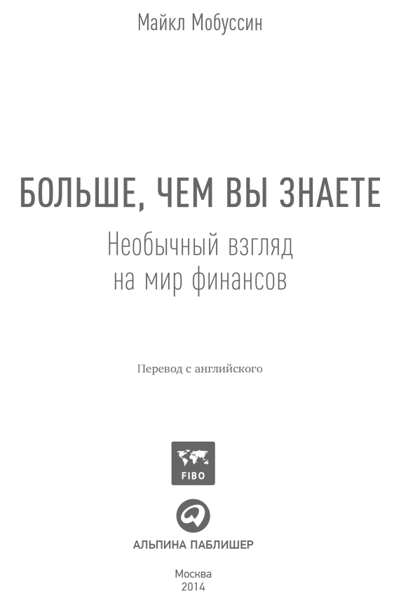Больше, чем вы знаете: Необычный взгляд на мир финансов / Майкл Мобуссин; Пер. с англ. — М.: АЛЬПИНА ПАБЛИШЕР, 2014.