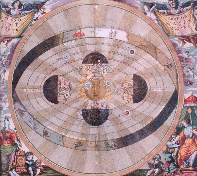 Рис. 2.10. Сценография системы Коперника. Офорт с ручной раскраской. 1661 г.[42]