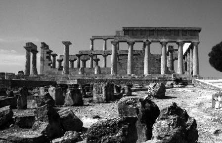 И все-таки в случае с античным храмом эффект монументальности имеет совершенно особое происхождение. Он достигается не увеличением абсолютных размеров сооружения, и не искусственной размельченностью деталировки, и не доминированием статичной вертикали, хотя древнегреческим зодчим были достаточно хорошо известны все эти приемы. Монументальность античного храма является прежде всего результатом точно сбалансированных в пользу горизонтали отношений между горизонтальными и вертикальными частями здания. Массивный антаблемент надежно останавливает вертикальный порыв колонн, который напоминает о себе пунктиром триглифов, чтобы потом послушно угаснуть в примиряющем треугольнике фронтона.