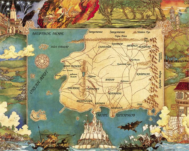 Этот всеобъемлющий труд снабжен множеством цветных иллюстраций, карт, среди которых, кроме уже опубликованных в вышедших книгах сериала, новые карты мира, Шончанской империи, стран Союза Десяти государств и стран, существовавших в те времена, когда легендарный Артур Пейндраг Танриал начал свое восхождение к славе. Также даны портреты главных героев цикла, виды местности, изображения объектов Силы, флагов государств и многое другое. Книга будет просто незаменима для любого поклонника творчества Роберта Джордана.