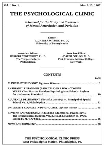 В 1907 г. Л. Уитмер учредил журнал «The Psychological Clinic».
