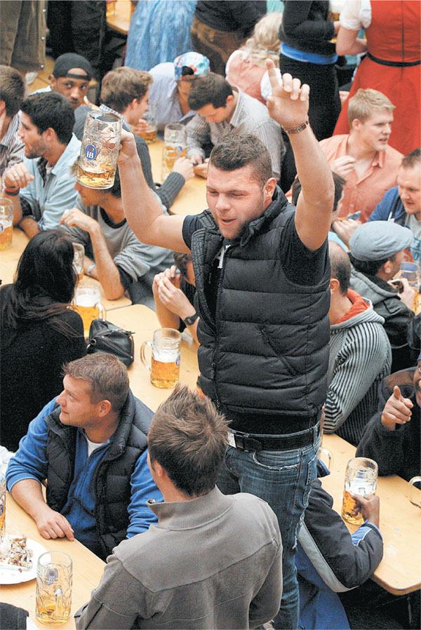 Ежегодно с середины сентября до первых чисел октября в Мюнхене проходит народное гулянье Октоберфест («Октябрьский праздник»). В нем принимают участие около шести миллионов человек. Их главное занятие – пить пиво, производимое исключительно мюнехенскими пивоварнями в соответветствии с мюнхенским законом о чистоте пива 1487 года и немецким законом о чистоте пива 1516 года. За две недели этого гулянья в среднем выпивается 6 миллионов литров пива, съедается 500 тысяч жареных кур (помимо огромных кренделей, белых баварских сосисок, картофельного и капустного салатов, свиных окороков, зажаренных на вертеле быков и запеченных на палочке рыб). Все это происходит в 14 больших палатках, вмещающих до 10 тысяч человек каждая, и 15 малых на несколько сот посетителей. В каждой палатке на эстраде играет свой оркестр, музыка которого сопровождается многотысячным хором посетителей, во все горло орущих народные песни. Люди эти почти все одеты в баварские национальные костюмы, так называемые «трахт» (это может быть как для мужчин, так и для женщин). У мужчин костюм состоит из кожаных коротких штанов – (ледерхозен), рубашки, жилета, сюртука, белых до колен носков, черных на толстой подошве ботинок и шляпы с перьями. Женский костюм называется «дирндль» и состоит из пышкой юбки, весьма открытой блузки, нечто вроде корсета на шнурах и фартука. То, где расположен бант завязок фартука, принципиально важно: если слева, значит дама свободна, если справа – замужем, если спереди посередине – девица, если сзади посередине – вдова.
