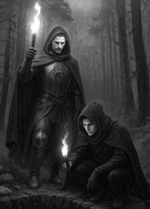 Он выпрямился, медленно отряхивая с пальцев грязь, и провёл взглядом по безмолвной яме, в которой покоилось слишком много молодых лиц. В его глазах не было страха, только отвращение к тому, кто это сделал. Ирис всё ещё стояла в стороне. Плащ тяжело облепил её плечи, а холодные пряди волос прилипли к щекам. Дождь стекал по её подбородку, капая на землю. Она не могла сдвинуться с места. Смотреть на тела было невыносимо, у каждого мёртвого была своя история, свои мечты, свой смех… который теперь никто никогда не услышит. Каждый вдох смрада, пропитанного болью и горечью, приносил с собой рвотную волну.