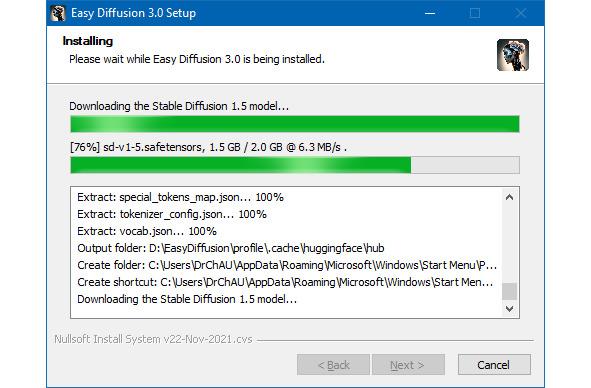 The program will install other auxiliary models (for example, GFPGAN model, Real-ESRGAN model, etc.), which are used by Easy Diffusion to improve the images you create.